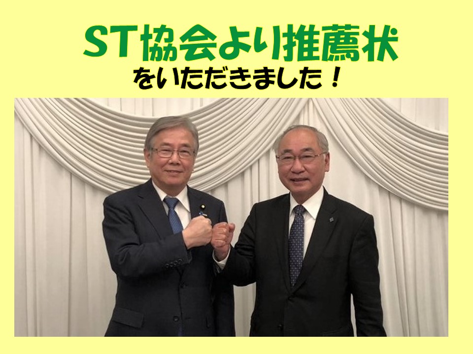 一般社団法人日本言語聴覚士協会 深浦 順一会長より推薦状をいただきました。 ご承知の通り、言語聴覚士は脳卒中後の失語症、聴覚障害、ことばの発達の遅れ、声や発音の障害をはじめことばによるコミュニケーションに問題が…