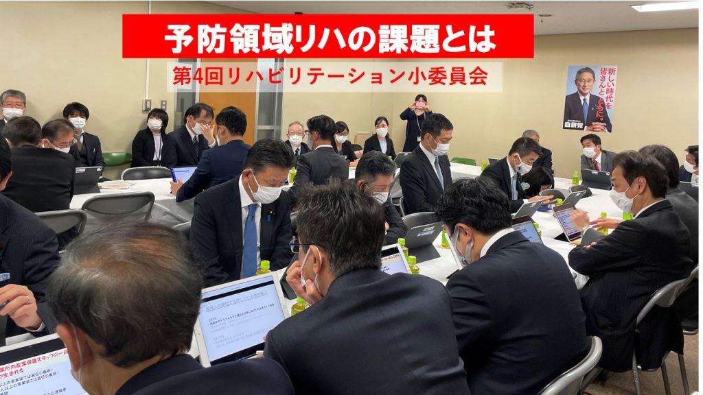 3月23日、自民党厚生労働部会第4回リハビリテーション小委員会は「予防領域の課題」をテーマに開催しました。 高齢者分野としては茨城県健康プラザ管理者の大田仁史先生から、今や全国へと広がっているシルバー体操を通し…