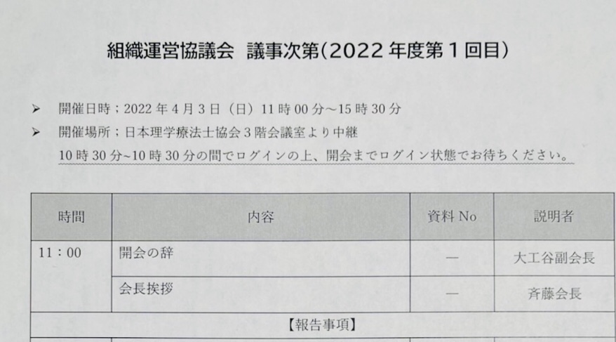 本日、組織運営協議会がオンラインで開催され、全国の理学療法士会会長らが集まり、今後の組織体制等に関して重要かつ真剣な意見交換が行われました。
